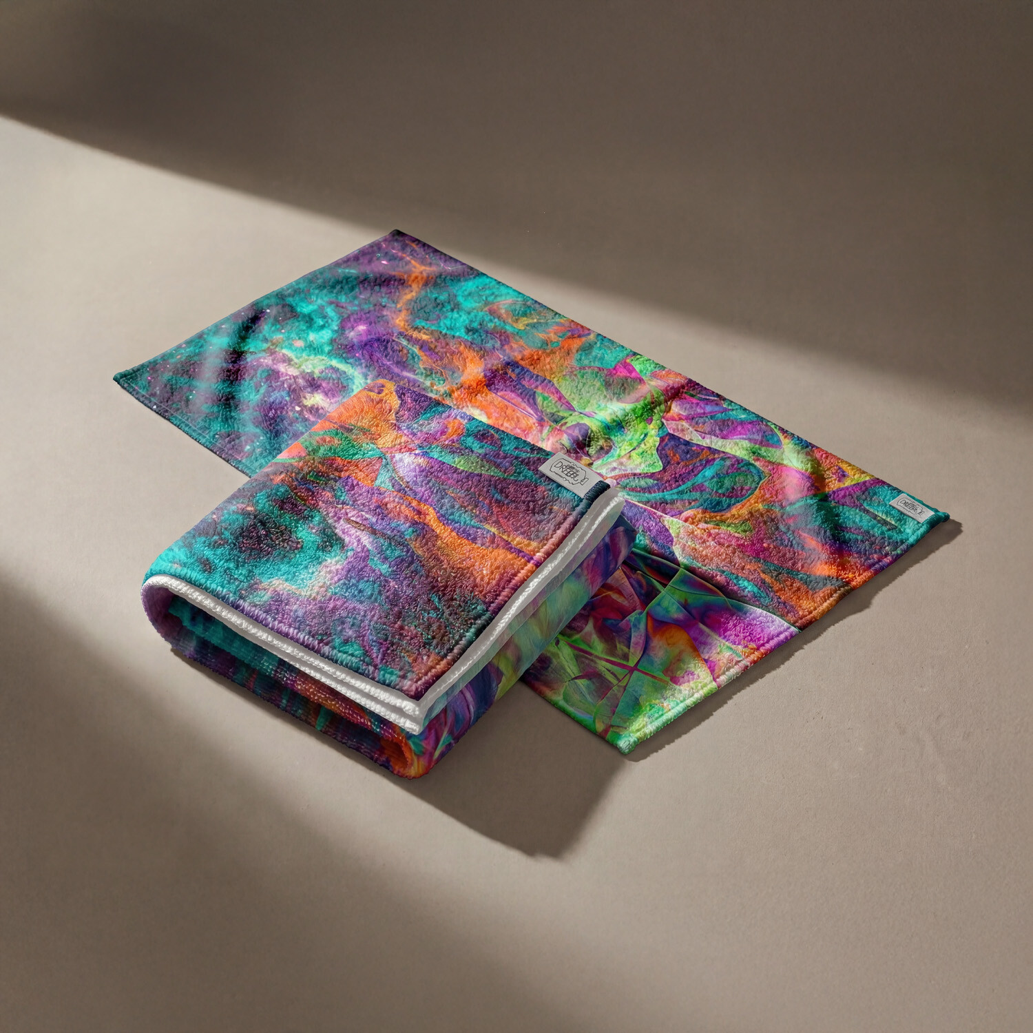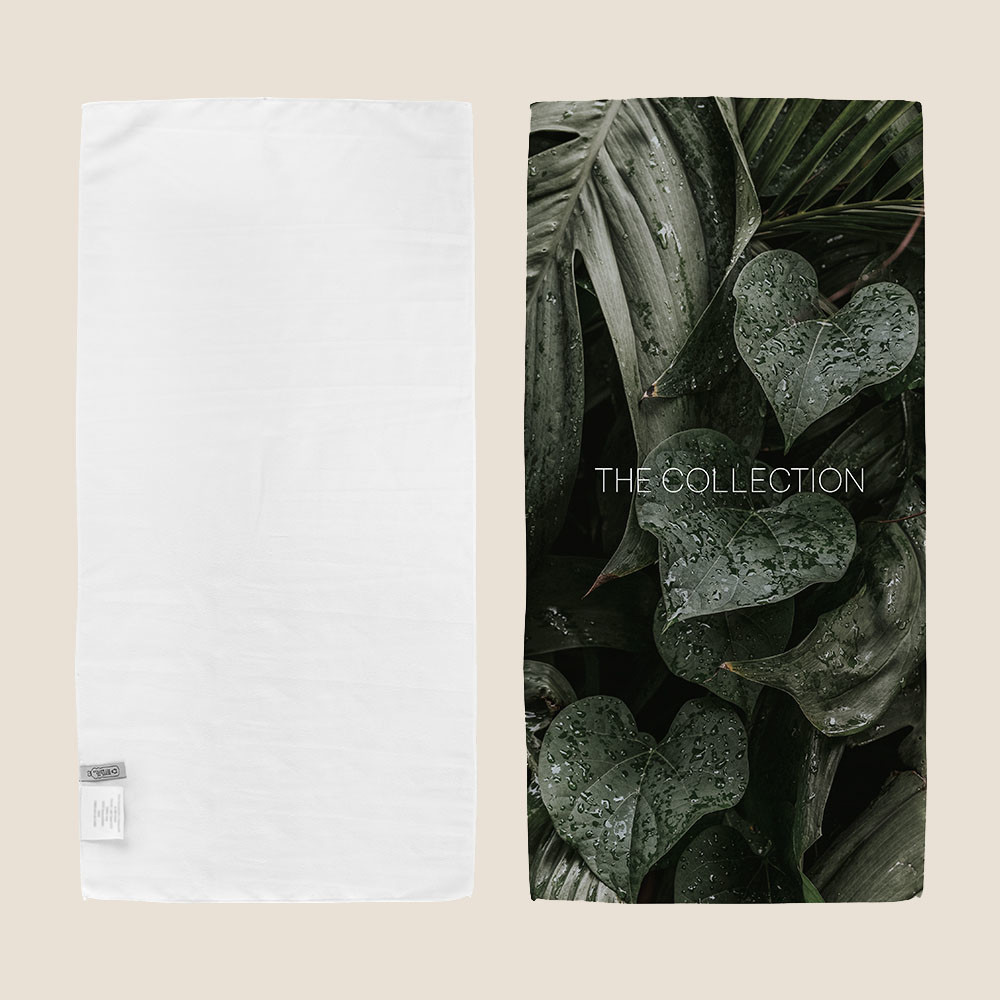 Toalha de 40 x 80, fabricada em poliéster RPET especial para marcação em sublimação em toda a superfície.