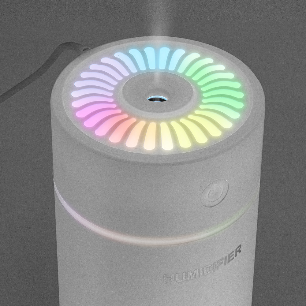 Umidificador com 320 ml de capacidade com luz e umidificação silenciosa. Cabo USB incluido.
