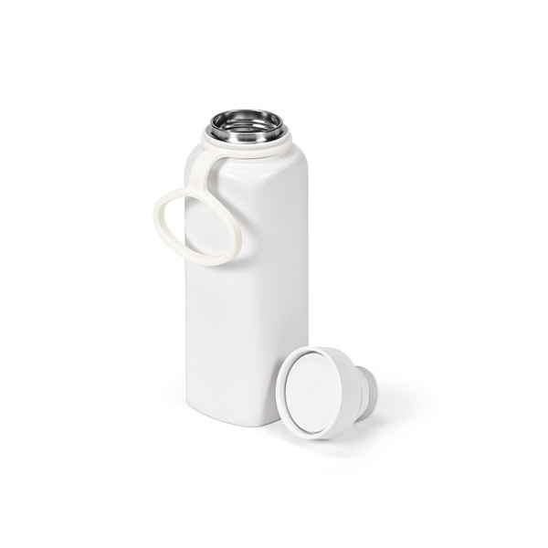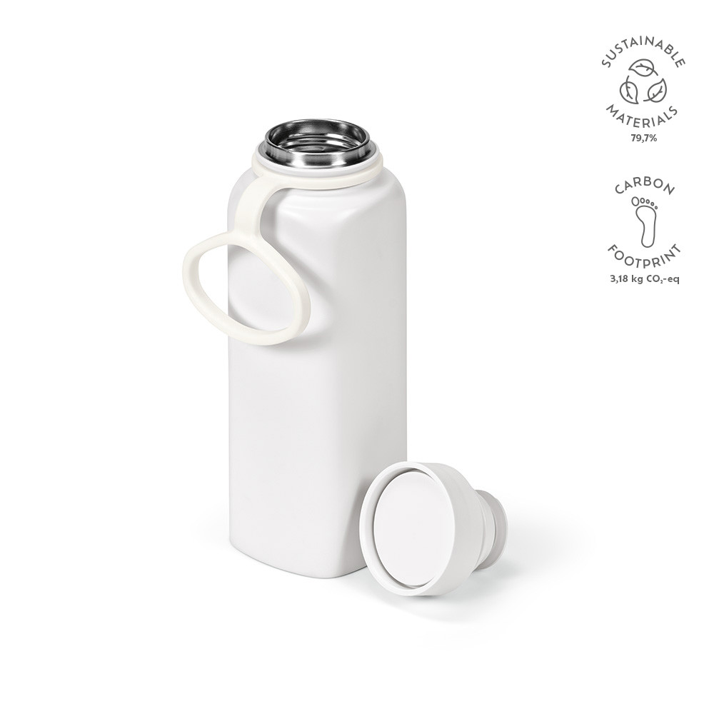 Com 820ml de capacidade (750ml líquidos), a Ural é feita em aço inoxidável reciclado. Possui uma tampa com botão de pressão de abertura 360° e uma pega colorida. Permite beber de qualquer ângulo. O isolamento com parede dupla mantém a bebida quente durante 14 horas e fria durante 48 horas. Embalada cuidadosamente numa caixa de kraft individual.