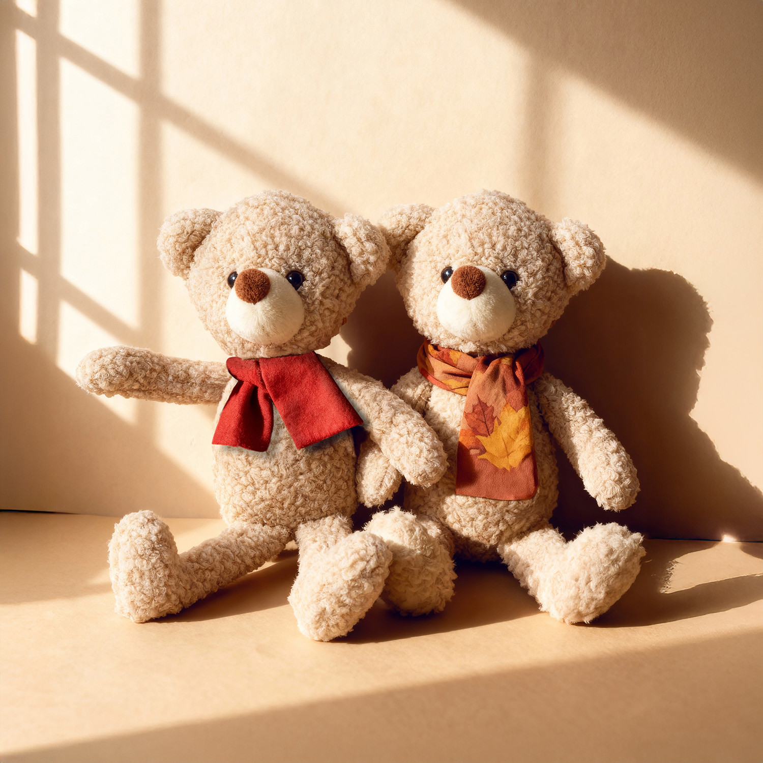 Ursinho pelúcia com cachecol vermelho para presonalização.