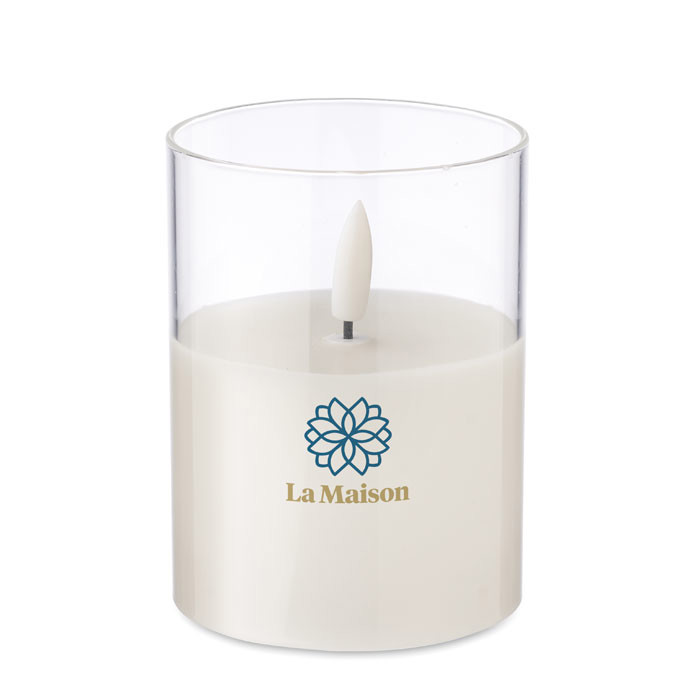 Vela de cera LED com efeito de chama real num suporte de vidro. 2 pilhas AA não incluídas.