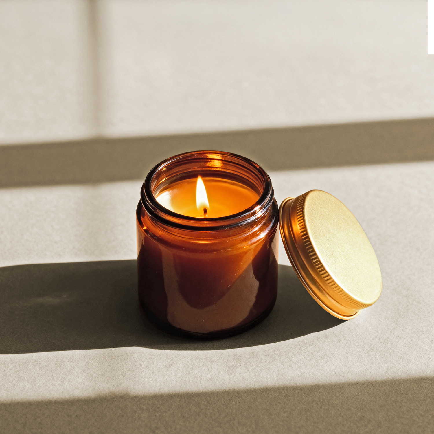 Vela com tampa metálica dourada em parafina e cera vegetal com 5% de fragrância "Wood Sage & Sea Salt". Vela 75gr.