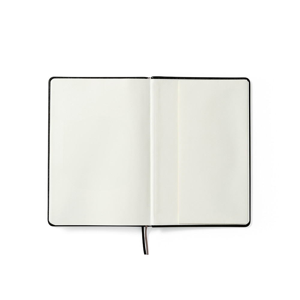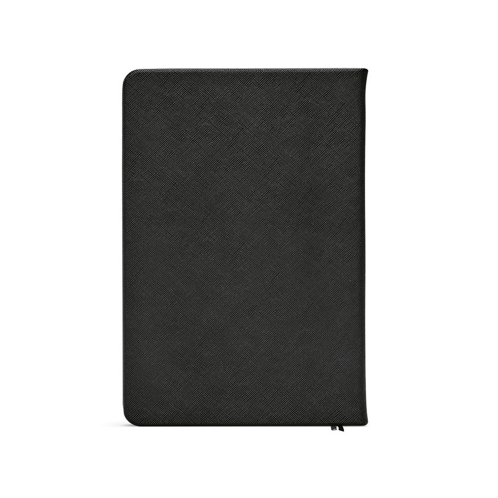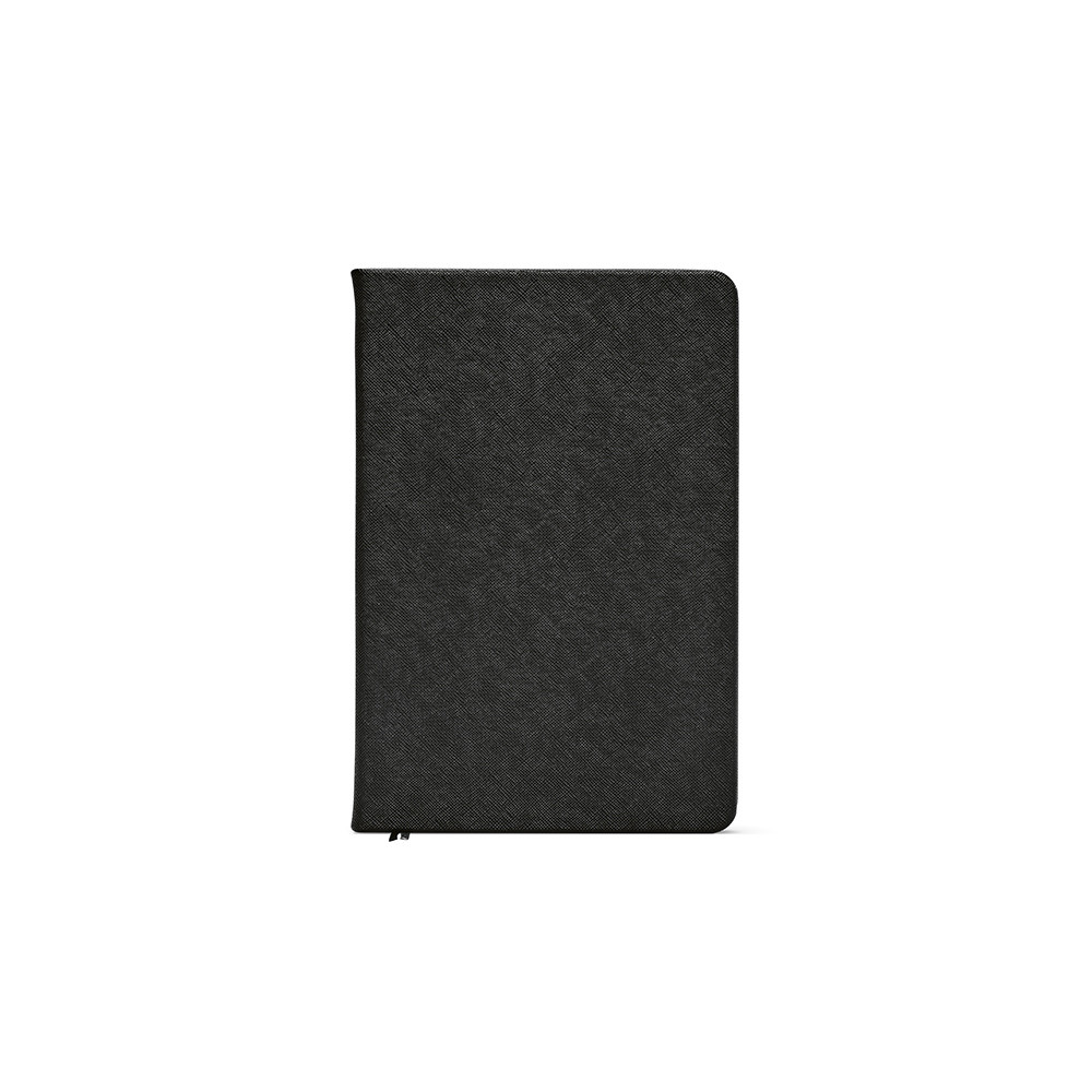 Caderno Wilde, com capa rigída em PU reciclado. No interior, dois bolsos práticos para organizar documentos. Dois marcadores de fita ajudam a navegar pelas 196 páginas pontilhadas FSC® marfim (80 gsm), com espaço reservado para data e número de página - uma combinação de consciência ecológica e praticidade. Inclui uma placa metálica personalizável que pode ser aplicada na capa frontal. Fornecido numa manga individual de kraft.